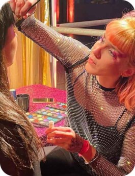 Nos artistes se déplacent sur chaque prestation, en France ou à l’étranger, avec leur mallette de maquillage paillettes.