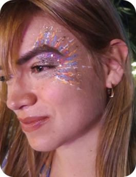 ⚡️ Nos Glitter Make-Ups sont généralement agrémentés de peinture sur visage pour une expérience encore plus vibrante : Aussi, en quelques minutes, nos artistes sont capables de sublimer chaque regard ou encore partie du corps tout en s’adaptant à votre morphologie.